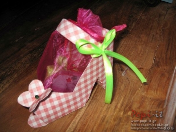 Με μια όμορφη συσκευασία σε ένα κουτάκι ή ακόμα καλύτερα σε ένα όμορφο χάρτινο γοβάκι – παπούτσι (για πατρόν δες εδώ) θα εντυπωσιάσει ακόμα περισσότερο!!