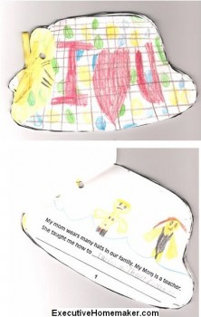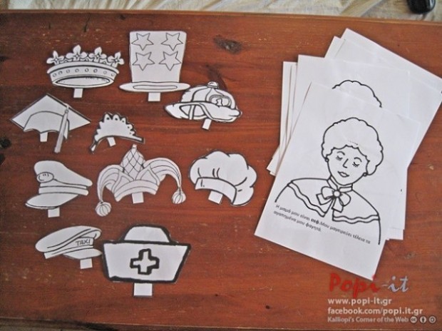 Με αφορμή ένα τραγούδι που βρήκα στο περιοδικό “Παράθυρο στην εκπαίδευση τεύχος 15 “ και διάφορες ιδέες που βρήκα σερφάροντας στο internet, ετοίμασα “Το βιβλίο με τα καπέλα” για την μαμά ( η αρχική ιδέα είναι από εδώ Mom’s Many Hats ) .