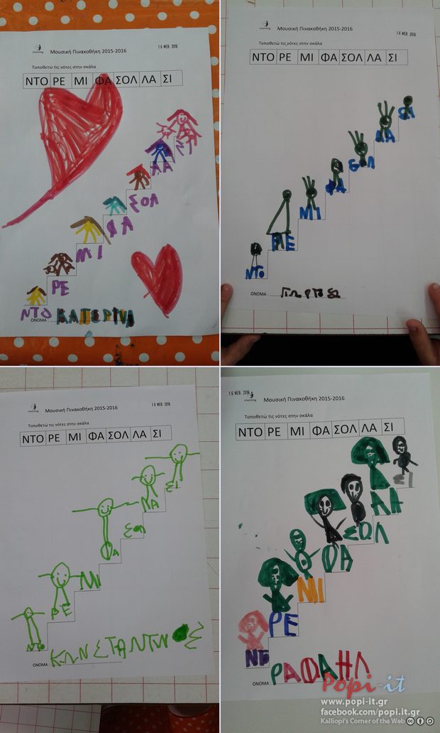 Το σπιτάκι της μουσικήςΟι νότες έγιναν κούκλεςΑνεβαίνοντας την σκάλα …Οι νότες στην σκάλα από σκοινίΚάνοντας το φύλλο εργασίας …… τοποθετήσαμε τις νότες στην σκάλα