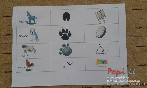 Αντιστοίχηση ζώου με πατημασιές και μουσικό όργανο τάξηςΗ ορχήστρα των μουσικών της Βρέμης