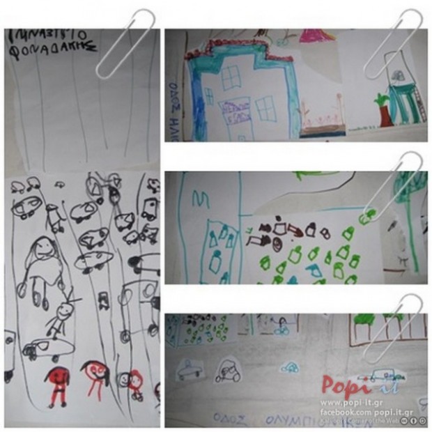 Ζωγράφισαν σπίτια , αυλές σπιτιών με ζώα ακόμα και τα μυρμήγκια που συναντήσαμε στον δρόμο !